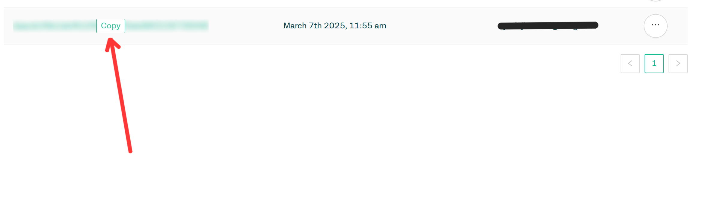 - The newly created API Key will appear in the list of API Keys. Hover on the API Key and click on it to copy the API Key to your clipboard.