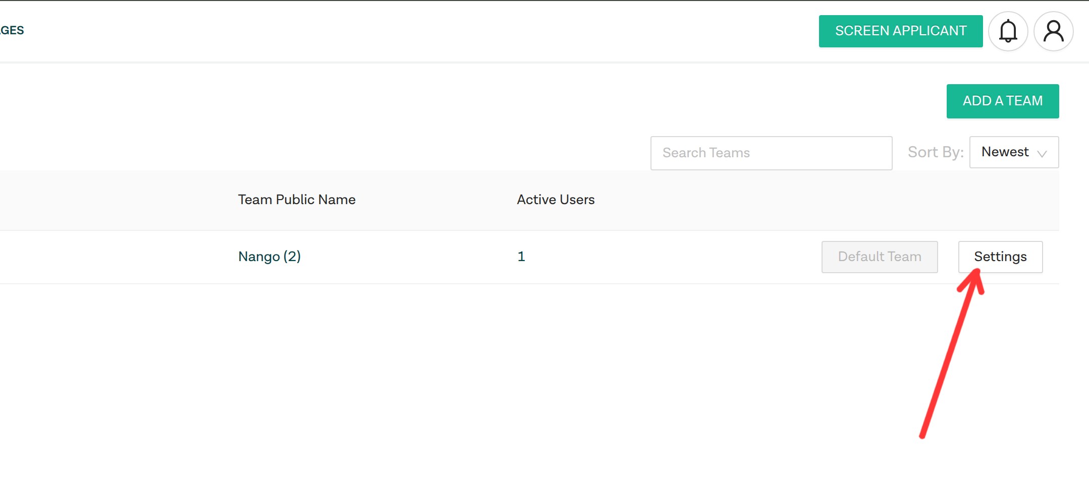 - You should see a list of teams you are a part of. On the team you are interested in, click on the Settings button.