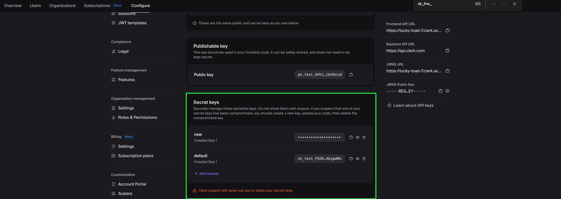 Step 1: Retrieve your Clerk Secret Key