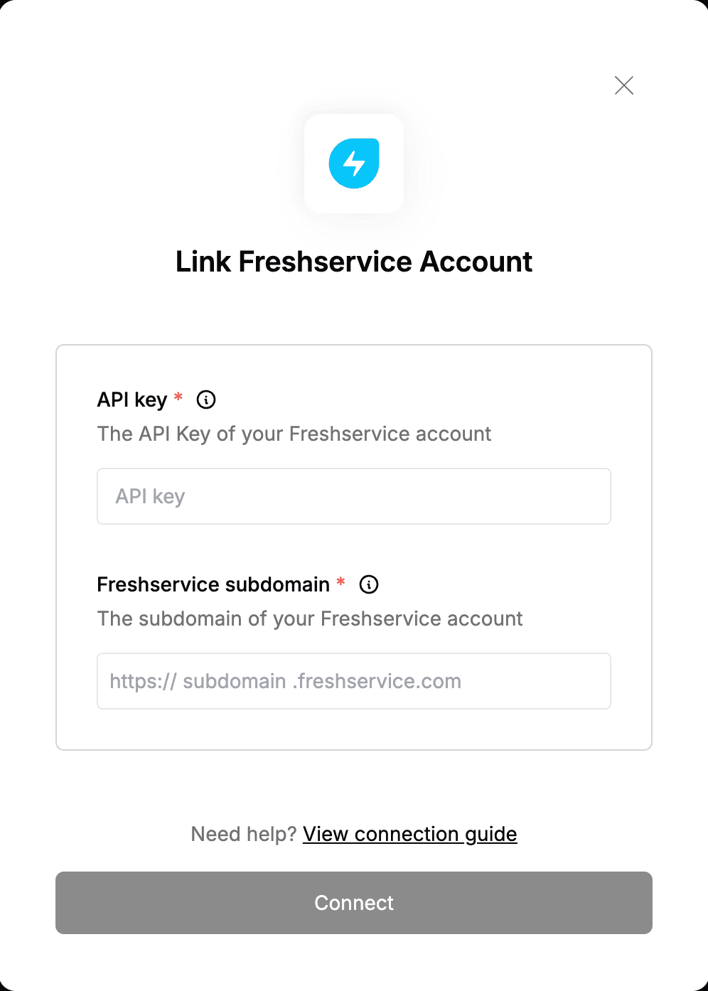 2. Enter the API Key and Freshservice subdomain in their designated fields.