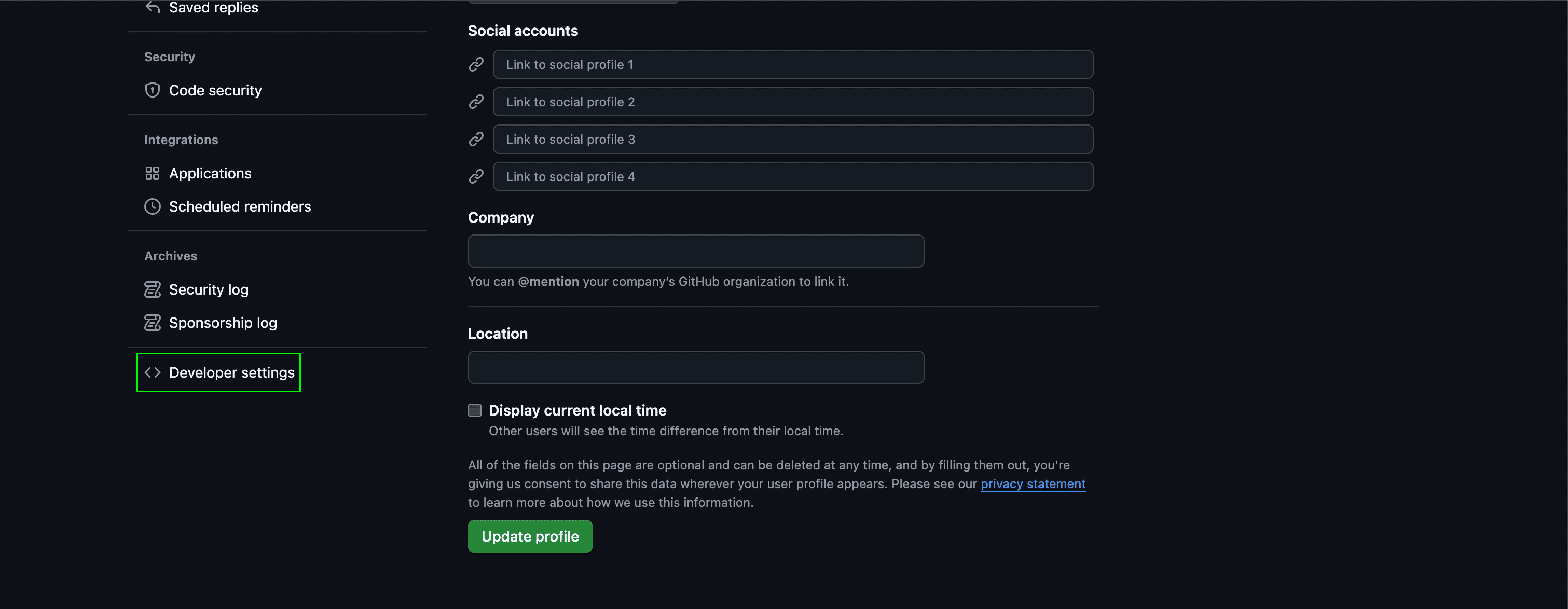 1. In the left sidebar, click Developer settings.