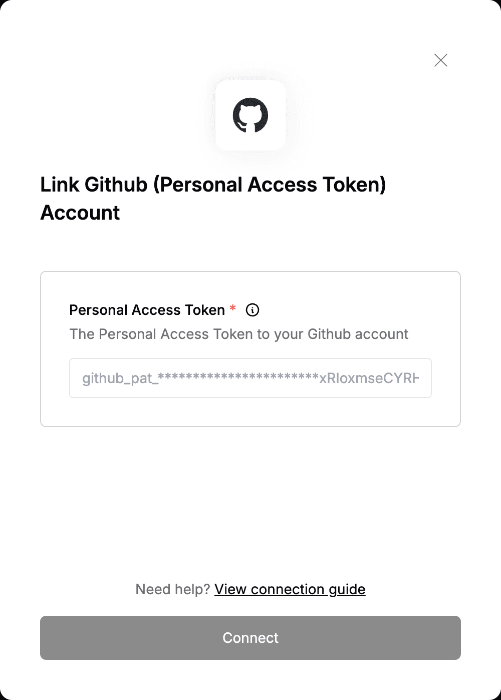 You are now connected to Github (Personal Access Token).