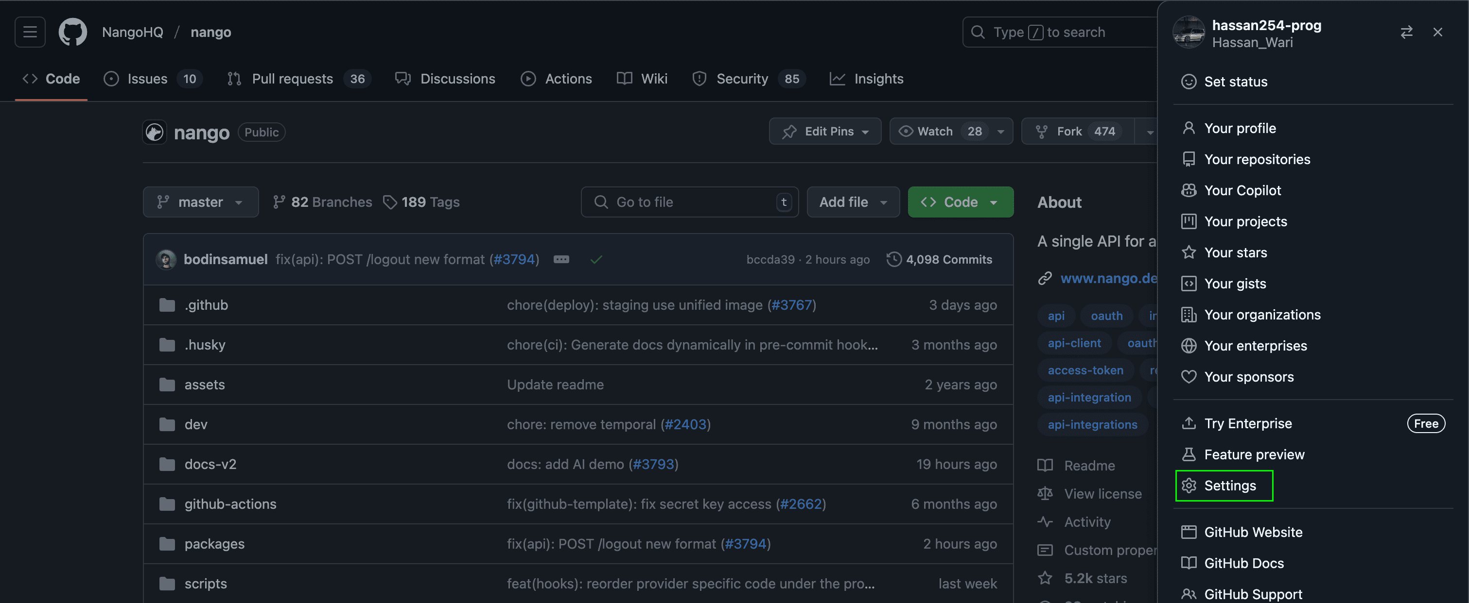 2. In the upper-right corner of any page on GitHub, click your profile photo, then click Settings.