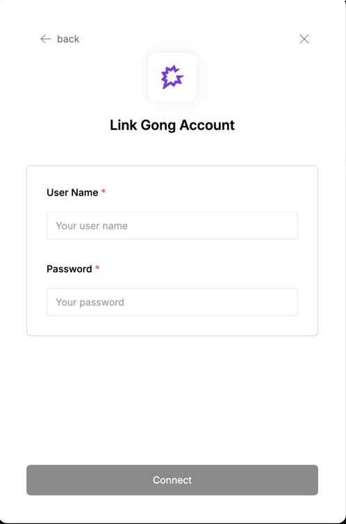 • Password: Your Gong Access Key Secret