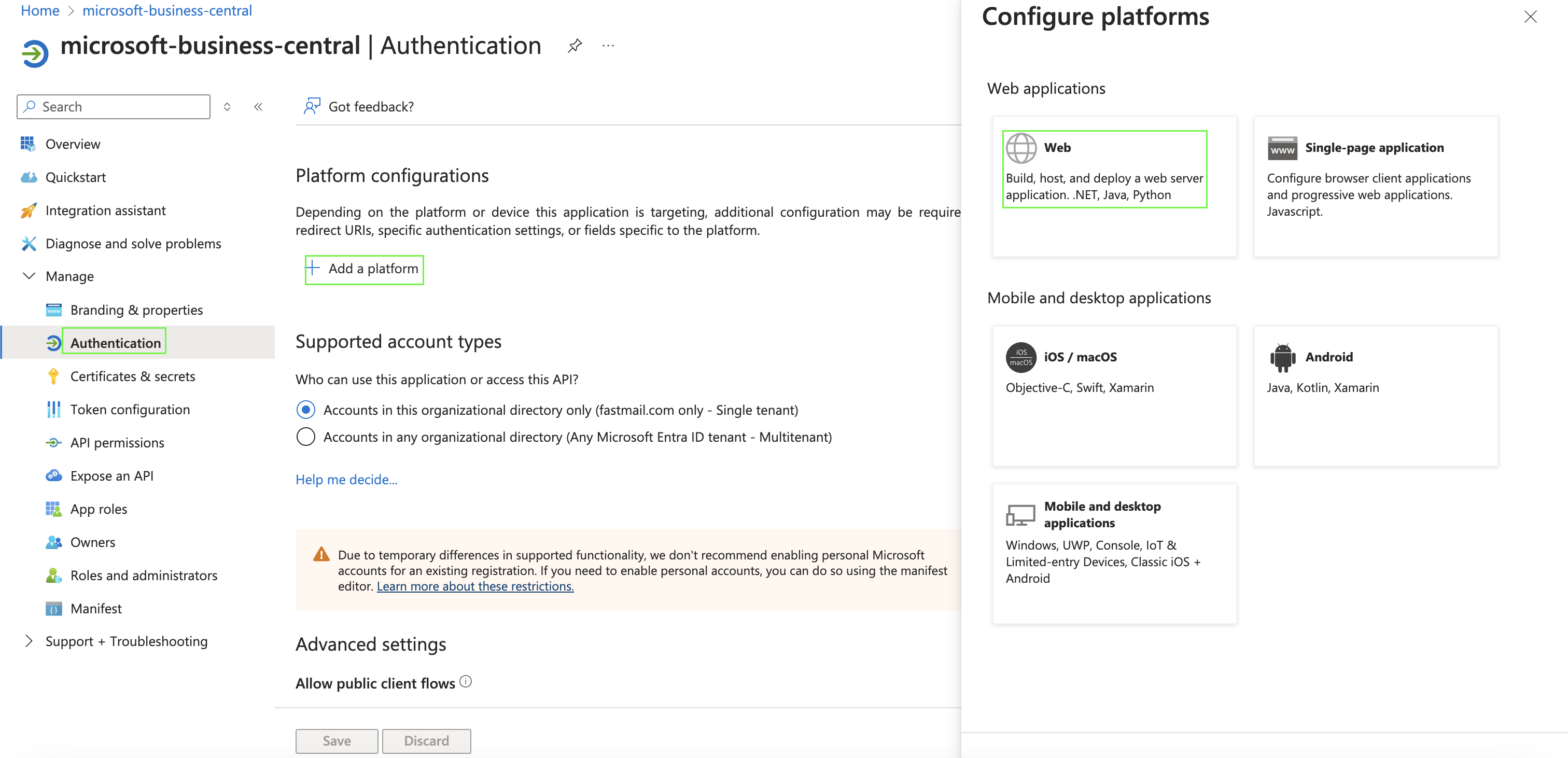• After setting up the app above, we need to Configure service-to-service authentication for the Azure AD application in Business Central.
