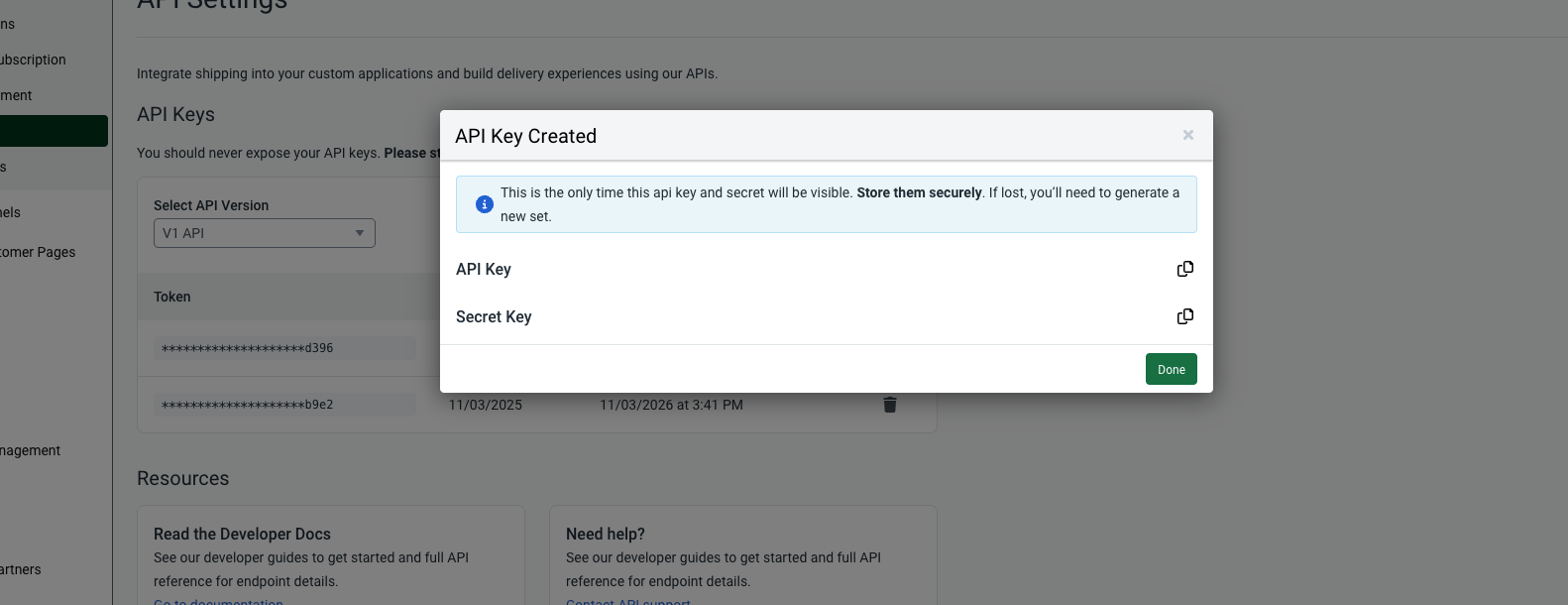 2. Secret Key - Used together with your API Key to authenticate and authorize requests to the ShipStation (v1) API.